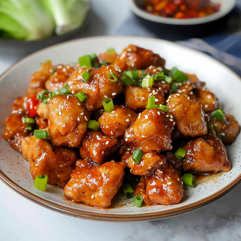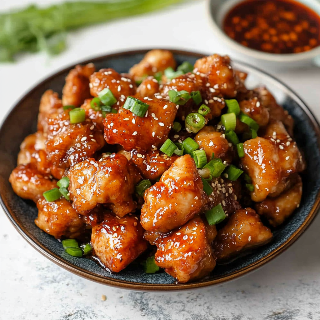 - Garnish and Serve: Transfer to a serving dish and top with green onions and sesame seeds. Serve over rice or noodles.